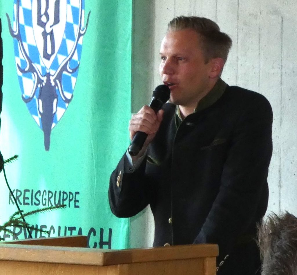 In einem ersten Redebeitrag nützte der zum 01.07.2025 neu ernannte Leiter des Forstbetriebs Flossenbürg, FD Stefan Wimberger die Chance, sich der Jägerschaft im Altlandkreis vorzustellen: